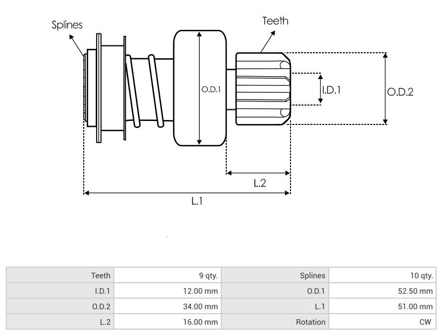 pastorek 9 zubů, směr otáčení ve smyslu otáčení hodinových ručiček