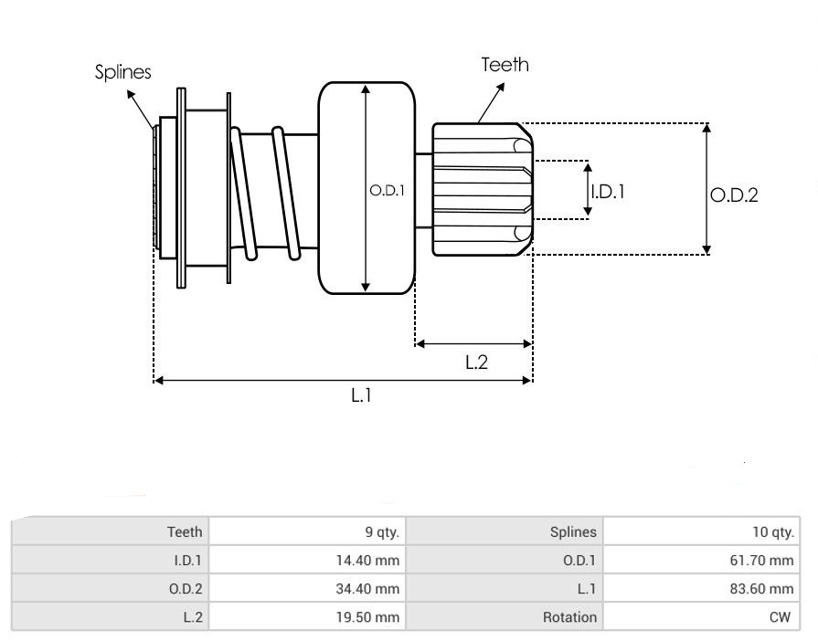 pastorek 9 zubů, směr otáčení ve smyslu otáčení hodinových ručiček