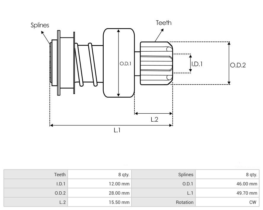 8 zubů, směr otáčení ve smyslu otáčení hodinových ručiček